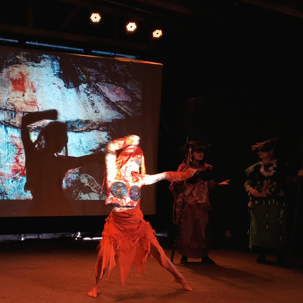 Poikkitaiteellinen Amatsoni-esitys: Varjoista kutsutut Ristiinan torilla 9.10.2021.